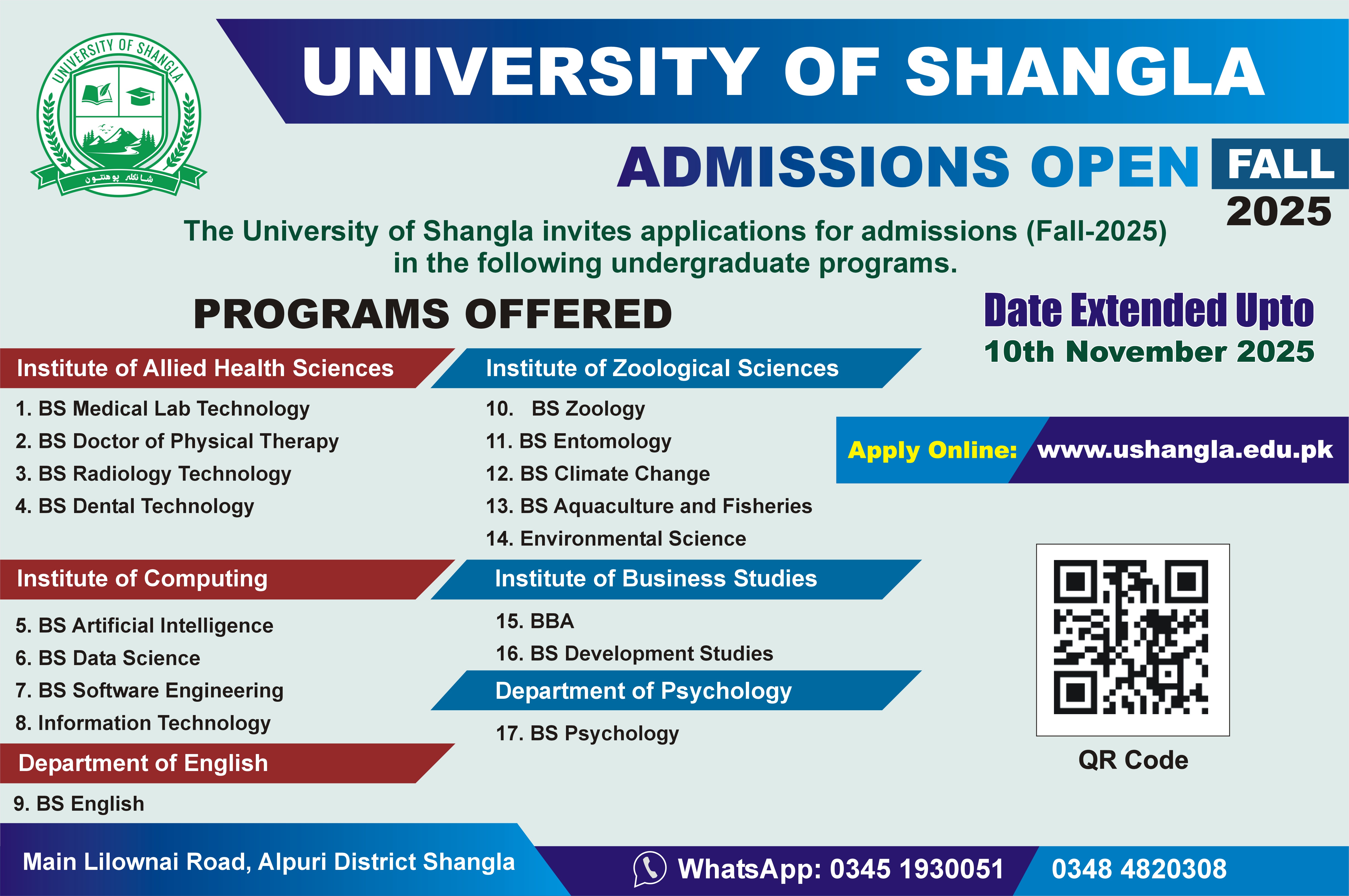 Admissions BS Programs Fall 2025 Date has Extended to 10th November 2025