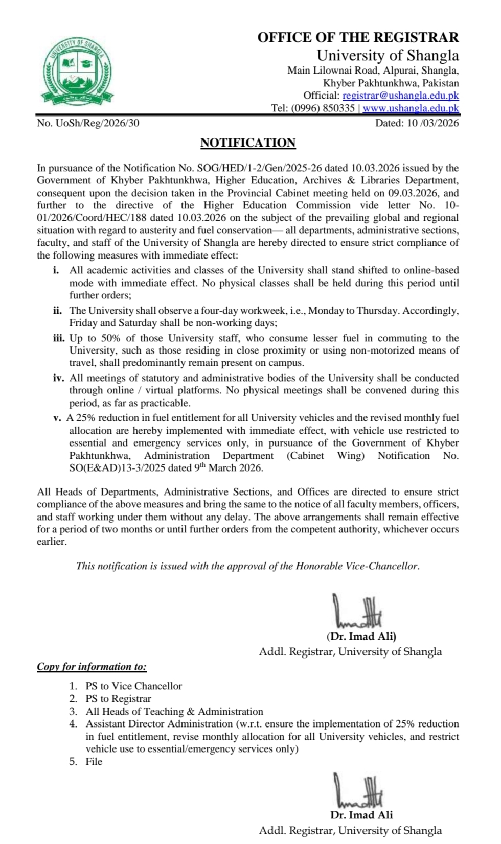 Notification on the subject of the prevailing global and regional situation with regard to austerity and fuel conservation.